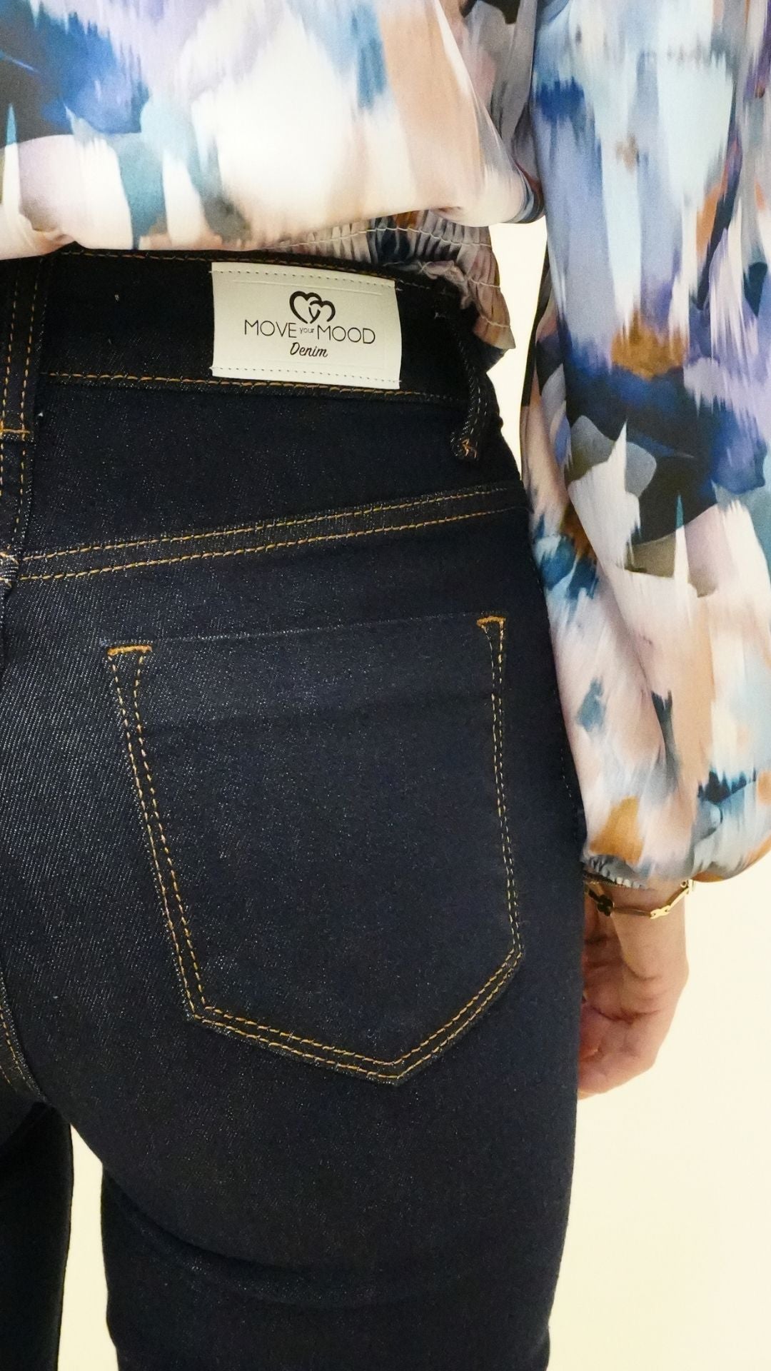 • tessuto in denim elasticizzato, ma confortevole e strutturato;
