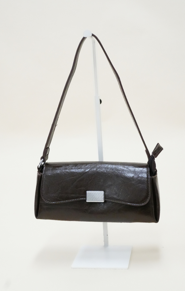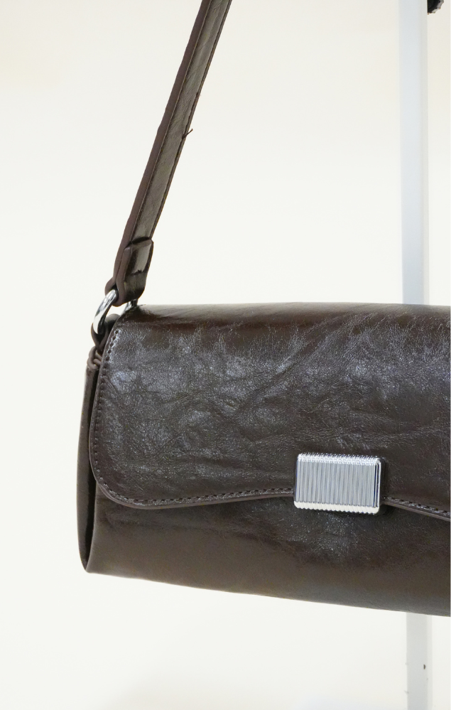 • chiusura con patta frontale arricchita da dettaglio gioiello argentato dal design minimal;