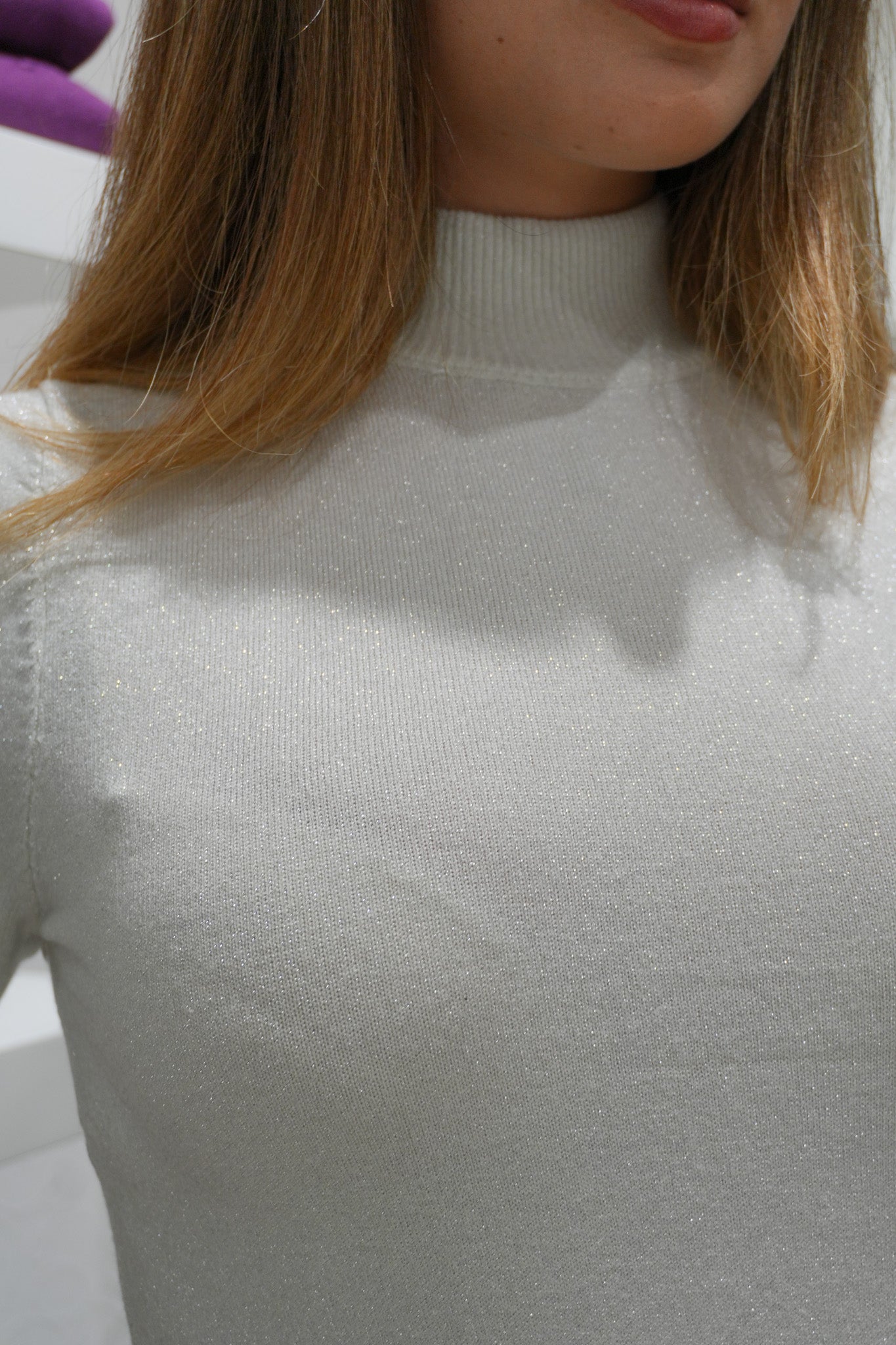 • in maglina con filato lurex, luminoso ma confortevole sulla pelle;