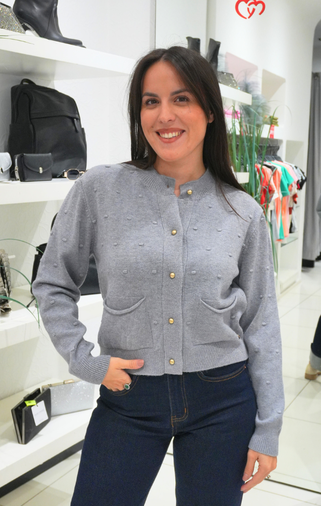 • Chiusura frontale con raffinati bottoncini effetto oro;