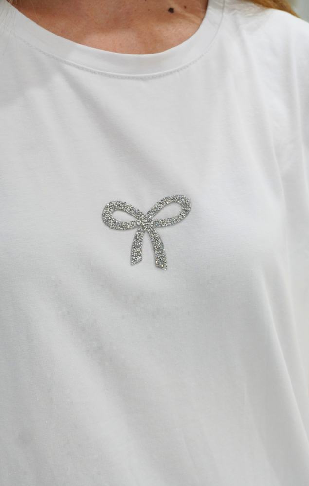 T-shirt bianca con fiocco argento