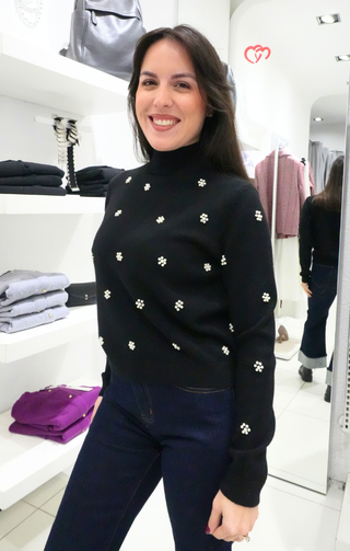 Maglioncino con perline decorative nero