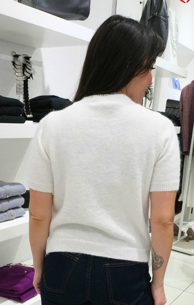 • ricca applicazione sul fronte del collo, composta da brillanti a forma di fiori e foglie;