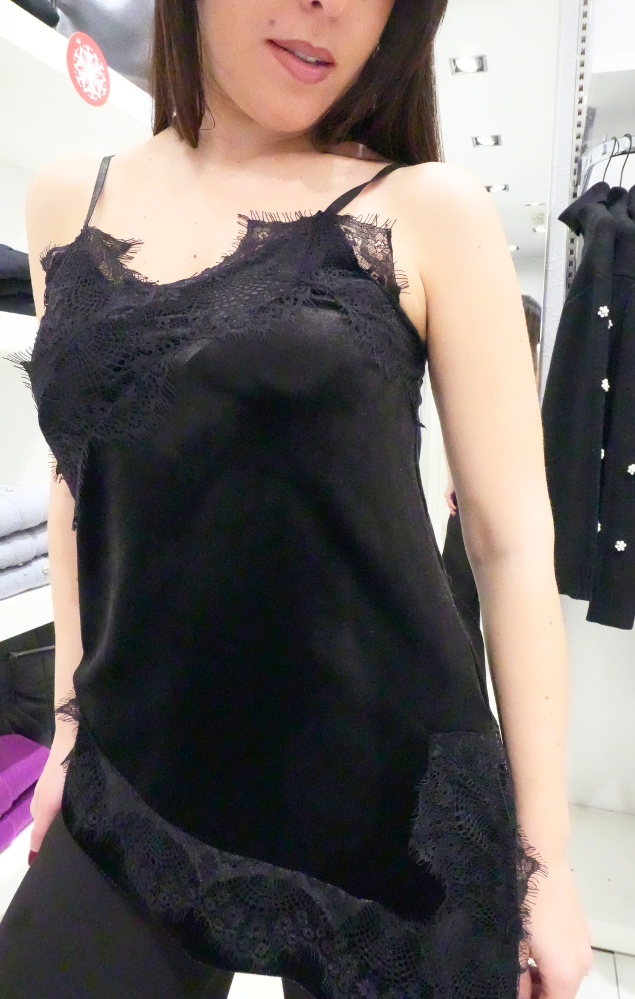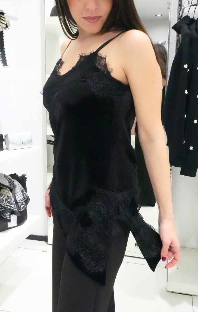 top in velluto con inserti in pizzo nero
