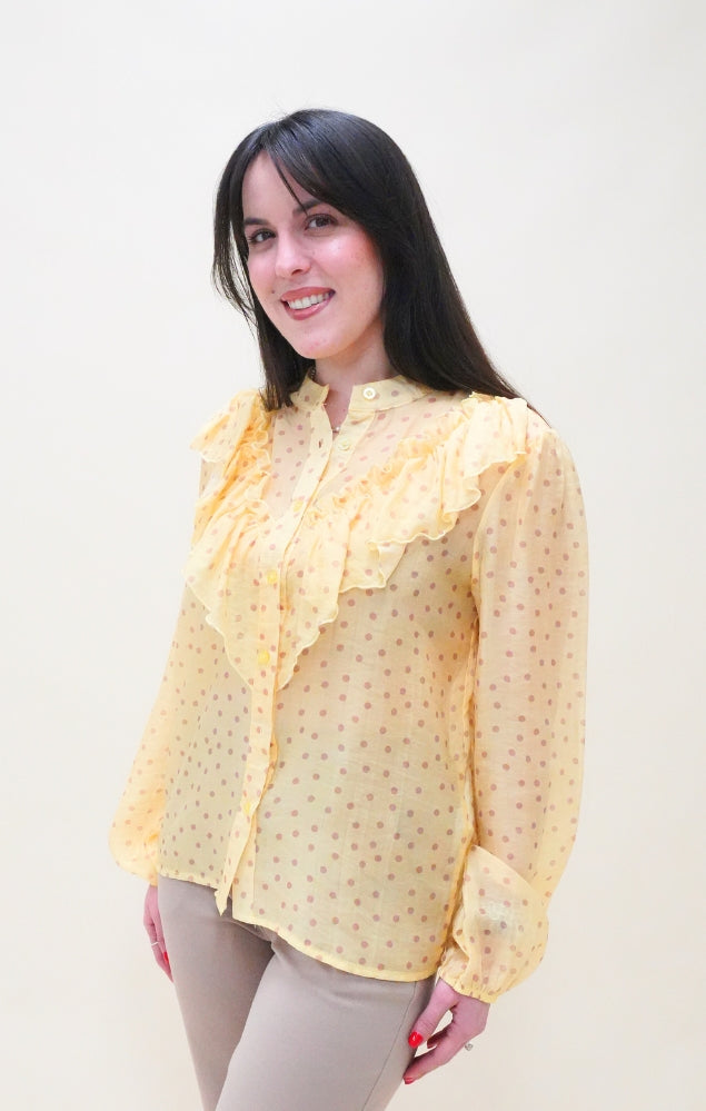 Blusa con volant e pois giallo