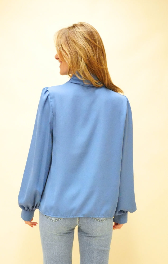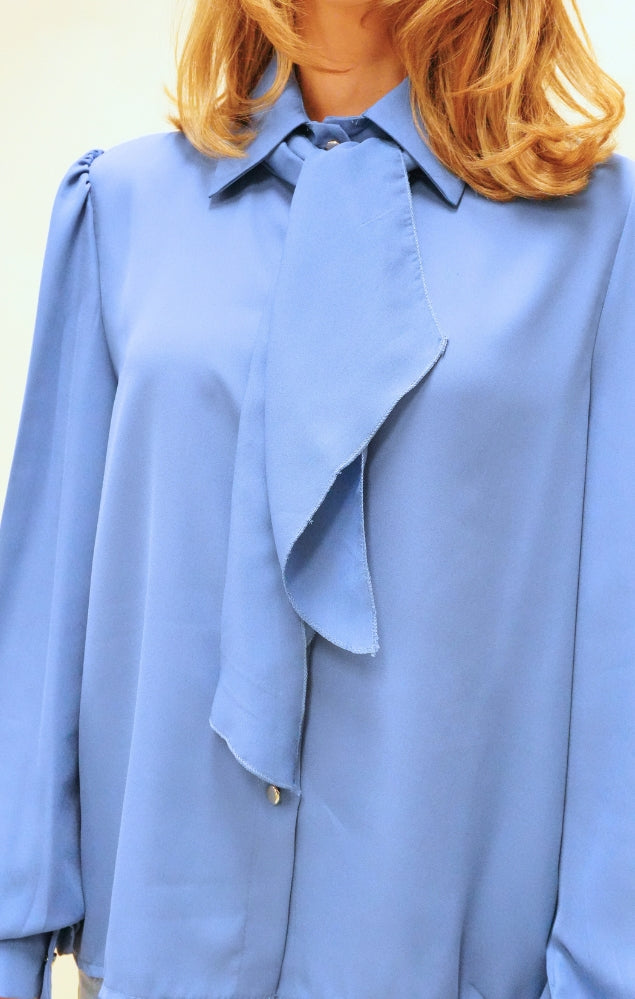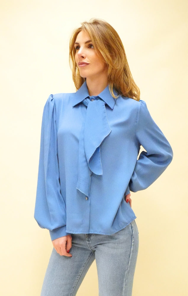 Camicia con fiocco al collo azzurro polvere